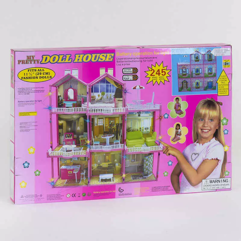 Будиночок для ляльок 6992 (6) 3 поверхи, світло, меблі (висота 109 см), в коробці