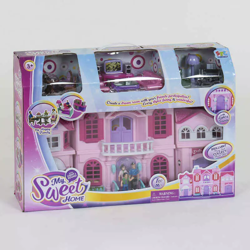 Будиночок ляльковий 16427 (12) з меблями та фігурками, світло, звук, в коробці