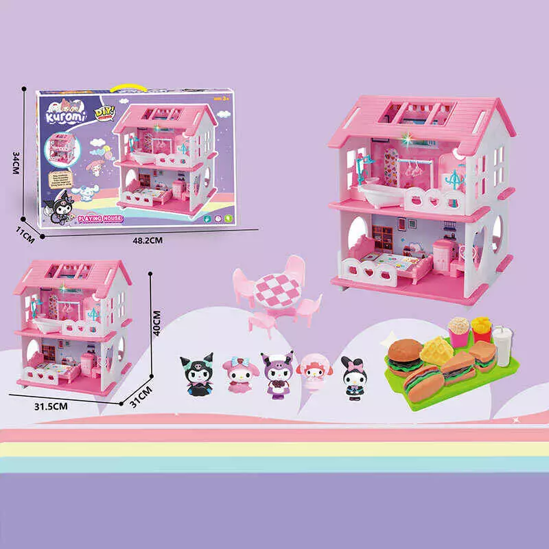 Будиночок з героями YQ 561 (24) розміри будиночка: 31,5х31х40 см, 2 поверхи, меблі, 5 фігурок героїв, муляжі продуктів, в коробці