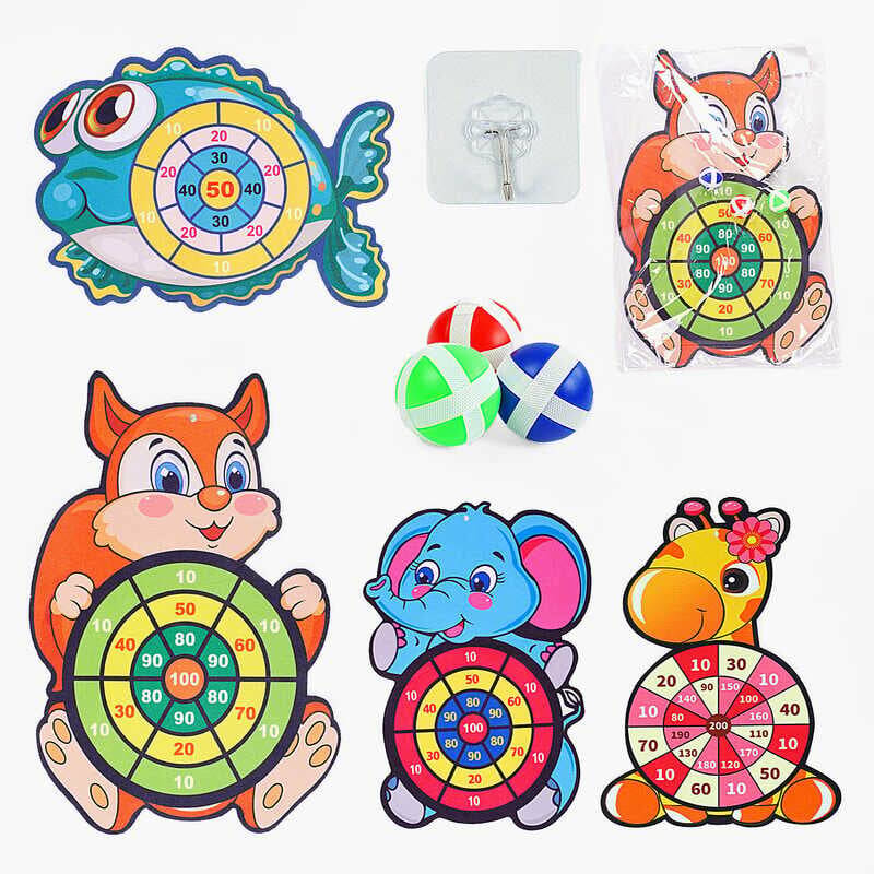 Дартс 3355-7 /10/14/16 (200/2) 4 види, на липучках, 3 м`ячики, в пакеті, ВИДАЄТЬСЯ ТІЛЬКИ МІКС ВИДІВ