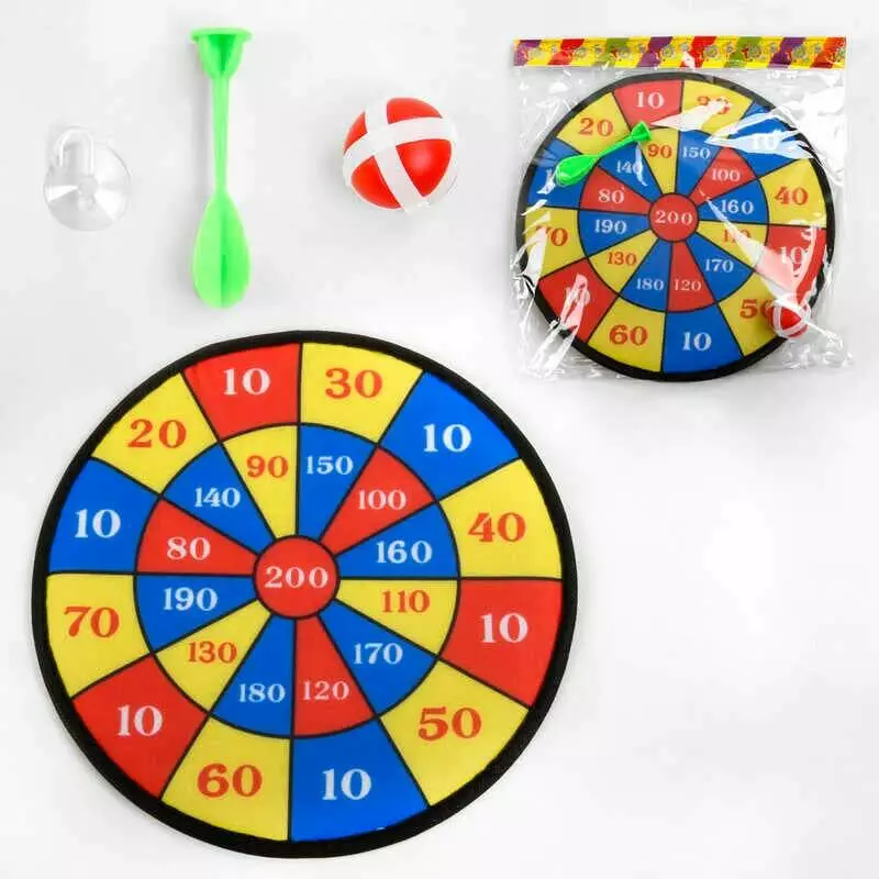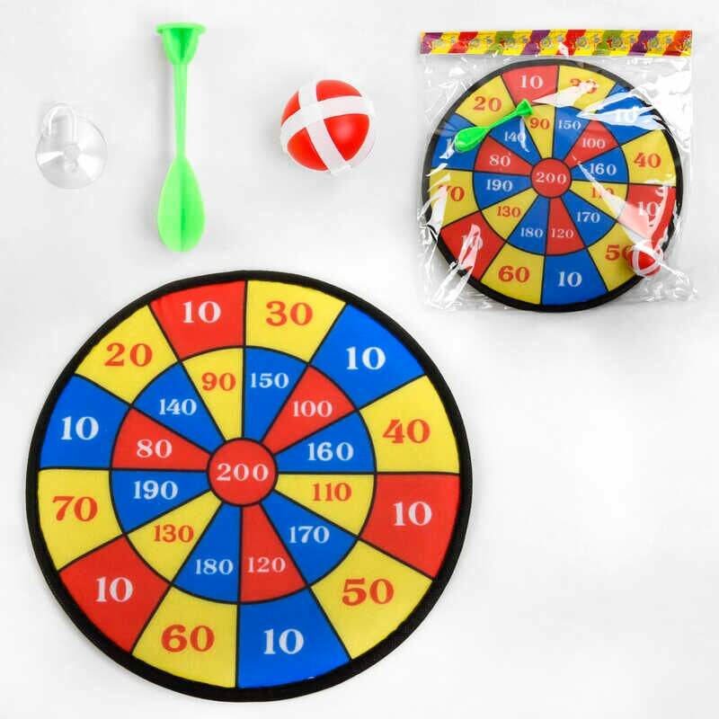 Дартс на липучках 888-4 (216/2) односторонній, діаметр 28см, дротик, кулька, гачок для підвішування, в пакеті