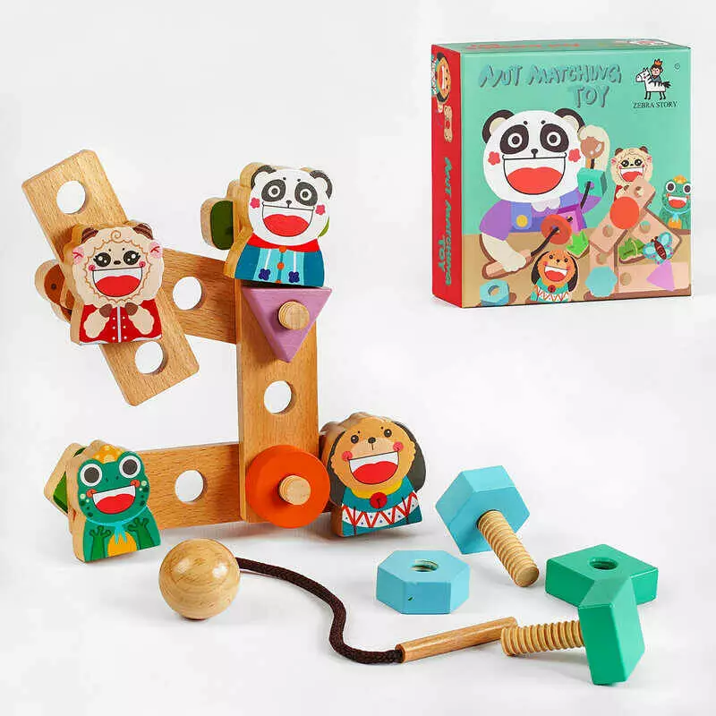 Логічна гра C 55636 (36) дерев`яна, 21 елемент, фігурна шнуровка, дерев`яні болтики, в коробці