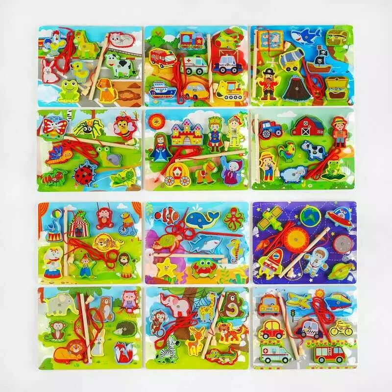 Дерев`яна гра Шнурівка C 55630 (100) 12 видів, шнурівка, рибалка, сортер, у плівці, ВИДАЄТЬСЯ ТІЛЬКИ МІКС ВИДІВ