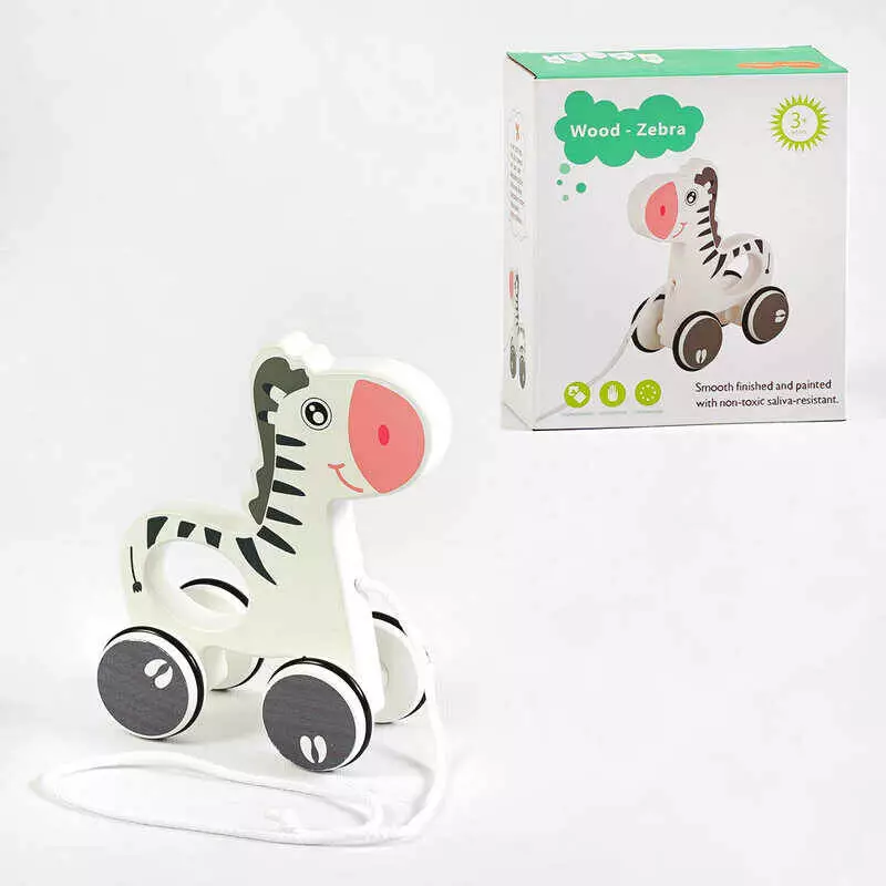 Каталка C 64010 (45) “Зебра”, дерев’яна, в коробці