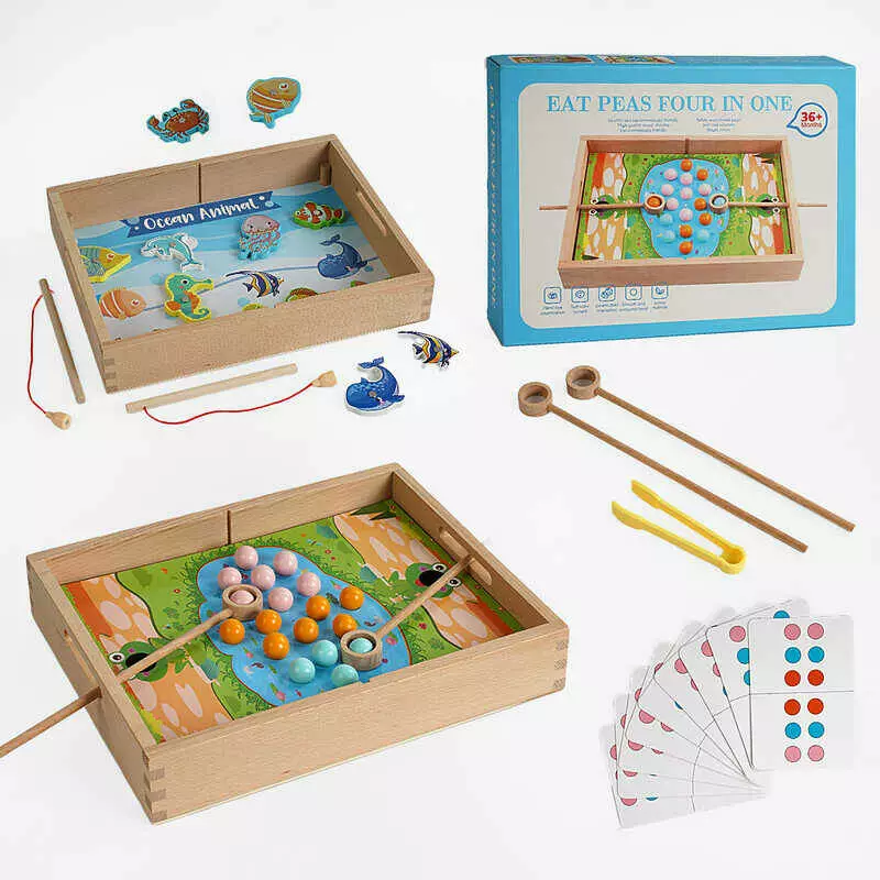 Логічна гра C 65030 (24) дерев`яна, магнітна риболовля, 12 двосторонніх карток, в коробці
