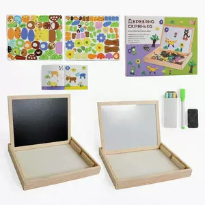 Дерев`яна магнітна дошка 16057 (36) "WToys", магніти, фломастер, губка для стирання, крейда, в коробці