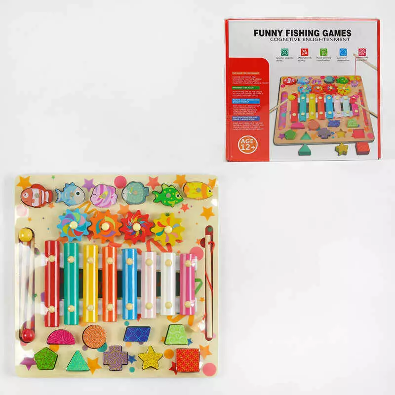 Логічна дерев’яна дошка C 63981 (24) ксилофон, рухомі шестерні, магнітна риболовля, геометричний сортер, в коробці
