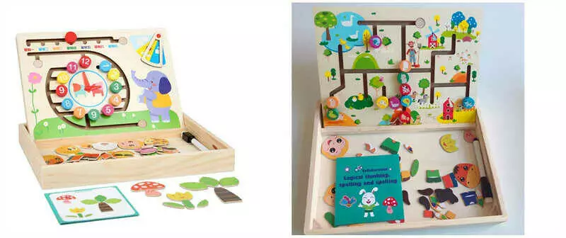 Дерев`яна магнітна дошка C 65726 (36) 3в1: пальчиковий лабіринт, магнітна гра, дошка для малювання, маркер “пиши-стирай”, в коробці