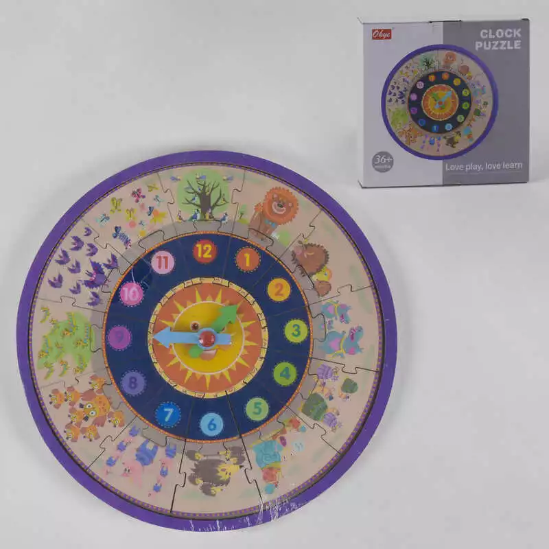 Годинник дерев`яний С 39312 (80) "Годинник-Пазли" вкладиші, в коробці