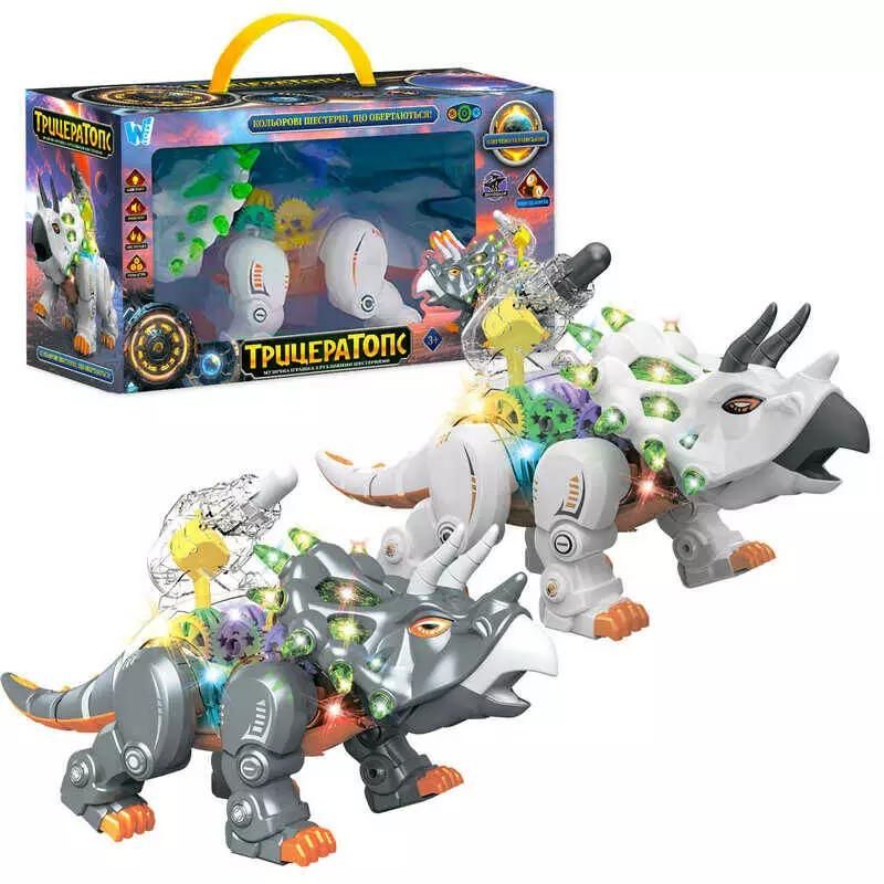 Динозавр "Трицератопс" ТК-14638 (24) "WToys", ОЗВУЧУВАННЯ УКРАЇНСЬКОЮ, пісенька, ходить, світло, рухливі шестерні, в коробці