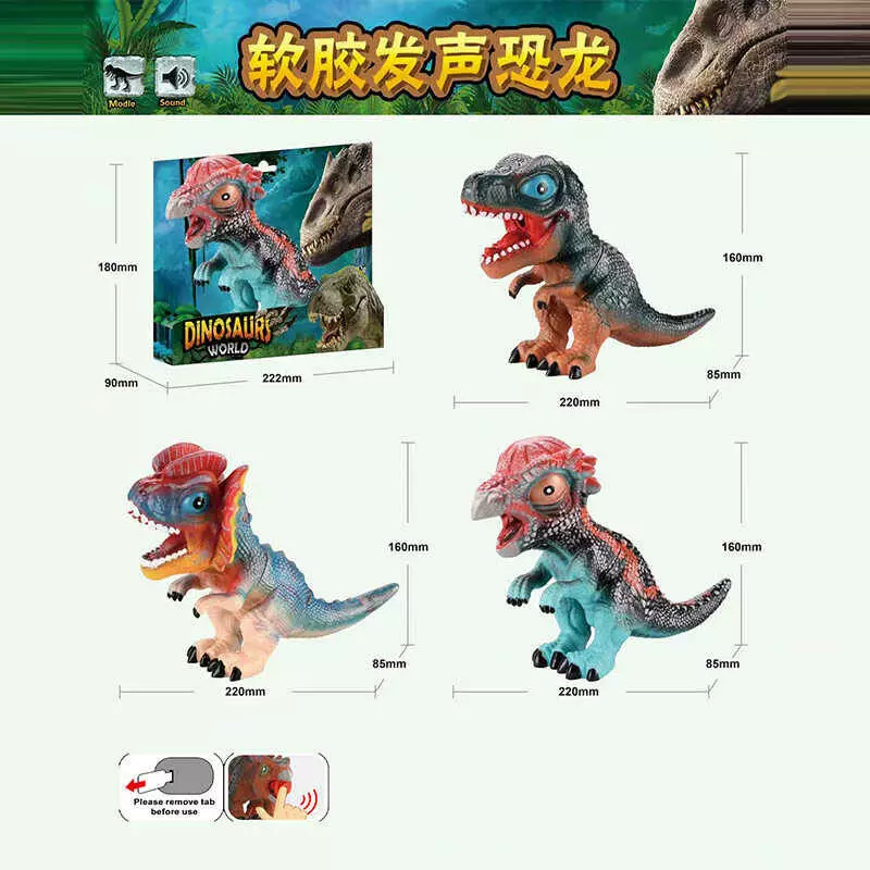 Динозавр W 677 (60/2) 3 види, звуки, гумовий, пискавка, в коробці, ВИДАЄТЬСЯ ТІЛЬКИ МІКС ВИДІВ