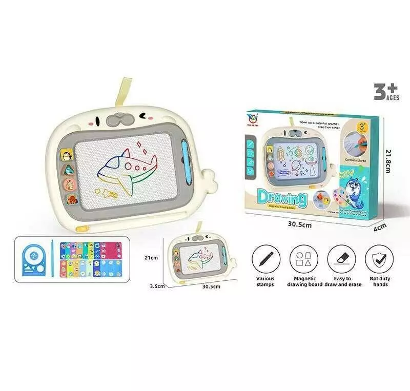 Дошка для малювання 518 (60) магнітна, розмір: 30х21 см, кольоровий малюнок, 2 стилуси, магнітні штампи, трафарети, картки, наліпки, в коробці