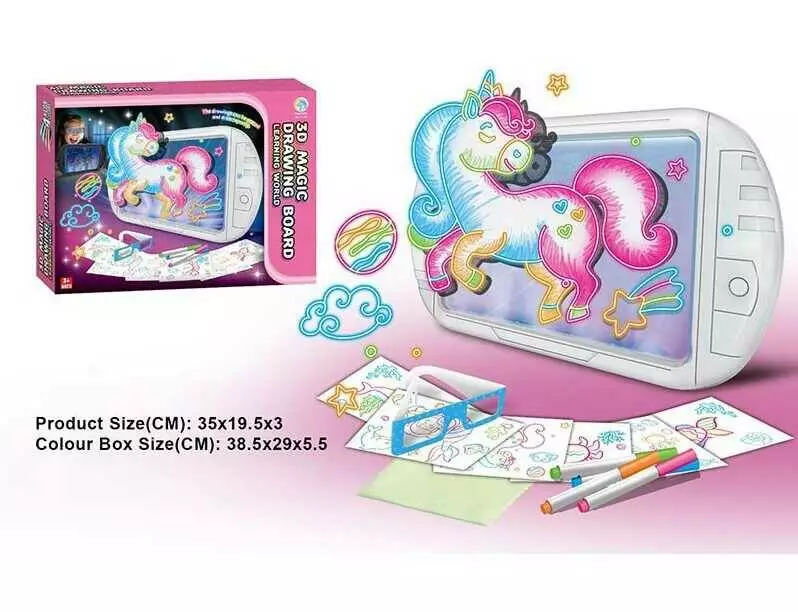 Дошка для малювання YM 20 (48/2) підсвічування, 6 двосторонніх трафаретів, 4 маркери, 3D окуляри, в коробці