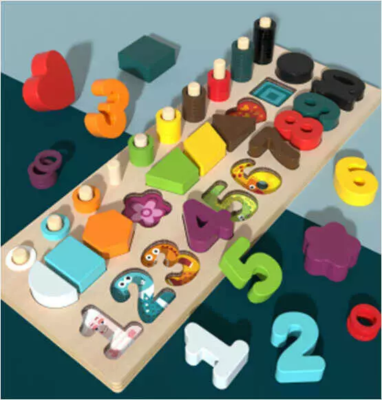 Логічна дерев’яна дошка C 53797 (24) сортер, дерев`яні кілочки, кольорові кільця, цифри, фігури, в коробці
