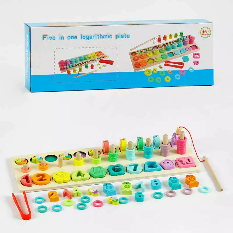 Логічна дерев’яна дошка C 61714 (28) магнітна риболовля, математичний, геометричний сортер, сортер за кольорами, пірамідки, в коробці