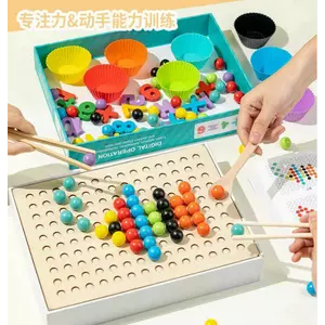 Мозаїка дерев’яна C 71003 (20) сортер, картки-зразки, інструменти, кульки, цифри, в коробці