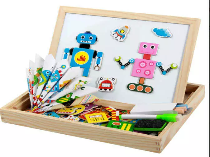 Дерев`яна магнітна дошка C 73982 (36) “Роботи”, магнітні пазли, дошка пиши-стирай, в коробці