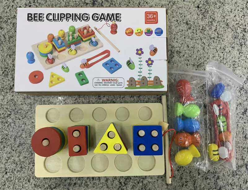 Логічна дерев’яна дошка C 74581 (60) гра з кілочками, магнітна риболовля, бджілки, щипці, сортер за формами, в коробці