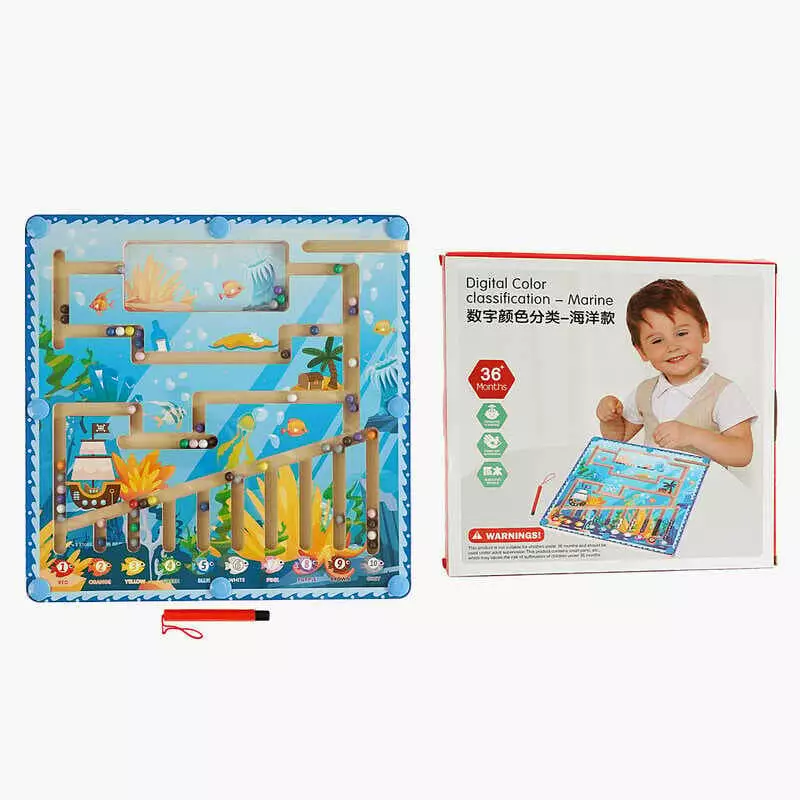 Дошка логічна С 68357 (30) дерев`яна, "Океан", магнітна паличка, кульки, назви кольорів англійською, в коробці