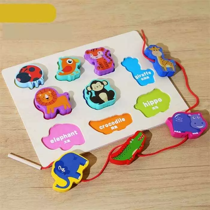 Вкладиші С 74553 (48) “Тваринки”, дерев`яні, 9 штук, гра шнурівка, назви англійською мовою, у плівці