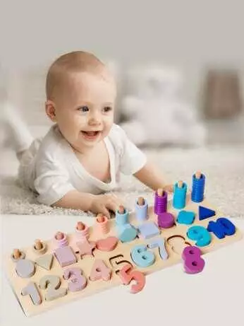 Логічна дерев’яна дошка С 74617 (36) сортер, дерев`яні кілочки, кольорові кільця, цифри, фігури, в коробці