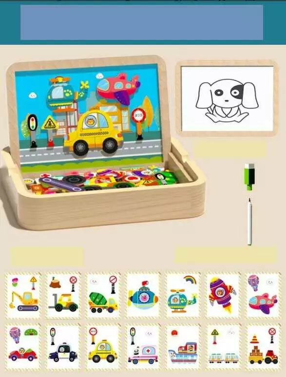 Дерев’яна магнітна дошка C 75302 (32) “Транспорт”, магнітні елементи, маркер пиши-витирай, в коробці ¶