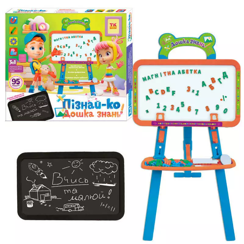 Дошка знань 12660 (12) "TK Group", 95 елементів, дошка для крейди й для маркерів, наліпки, магніти, крейда, маркер, в коробці
