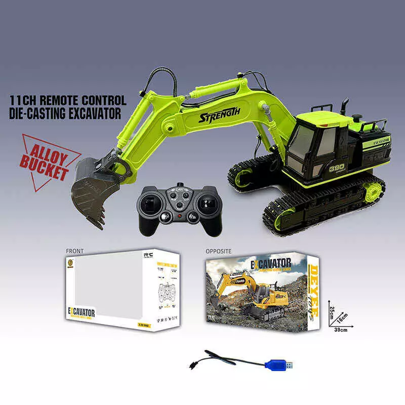 Екскаватор на радіокеруванні 393 L (12)металопластик,гусеничний хід,акум.6V, пульт2.4GHz,звуки,автоматичне обертання платформи та рух ковша,в коробці