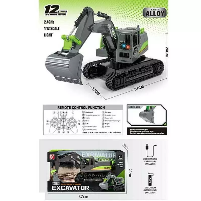 Екскаватор на радіокеруванні A 8864-135 (12) підсвічування, масштаб 1:12, акумулятор 3.7 V, пульт 27 MHz, гумові гусені, в коробці