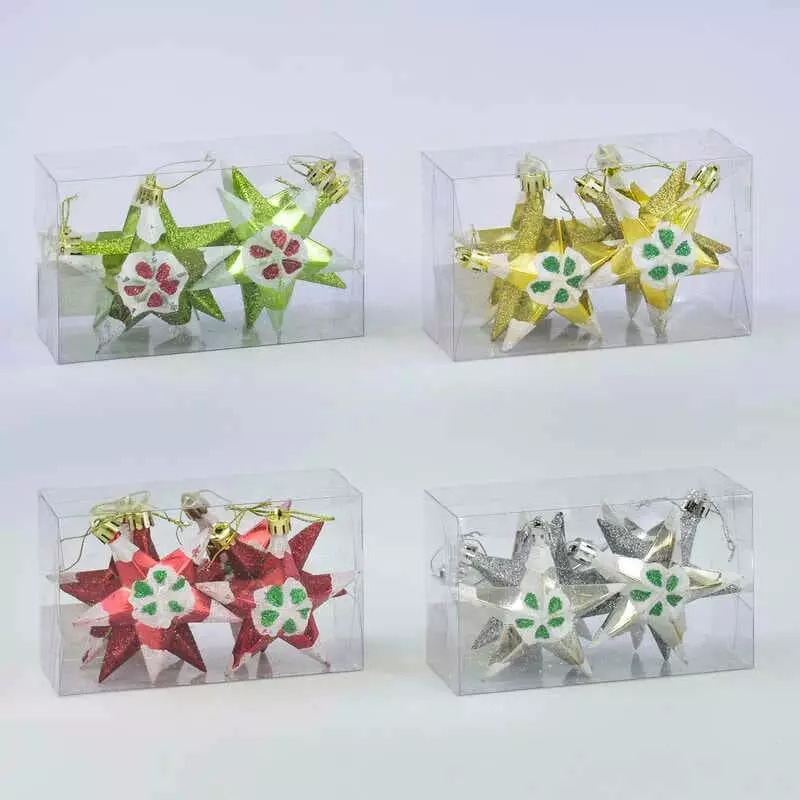 Ёлочная игрушка С 30868 Звезда (160) 8см, 4 вида, 6шт в наборе