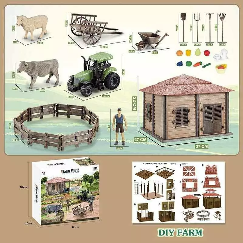 Ферма 2020-3 A (18) будиночок, трактор, інерція, гумові шини, фігурка фермера, 2 тварини, огорожа, інструменти, овочі, посуд, в коробці