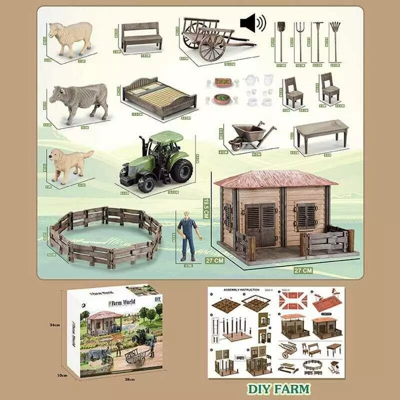 Ферма 2020-4 (18) будиночок, трактор, інерція, гумові шини, фігурка фермера, 3 тварини, огорожа, інструменти, посуд, меблі, в коробці