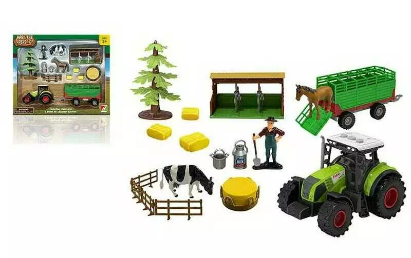 Ферма 550-6 K (12) 14 елементів, трактор з інерцією, підсвічування, на батарейках, фігурки тварин, фігурка фермера, в коробці
