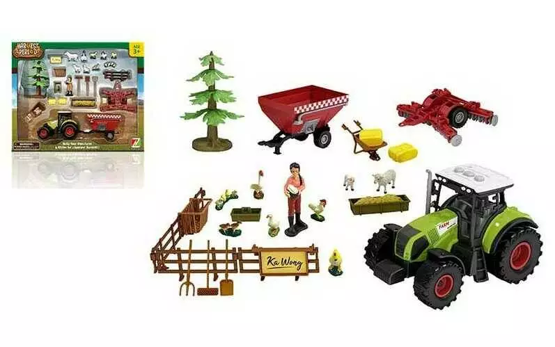 Ферма 550-7 K (12) 26 елементів, трактор з інерцією, підсвічування, на батарейках, фігурки птахів, фігурка фермера, в коробці