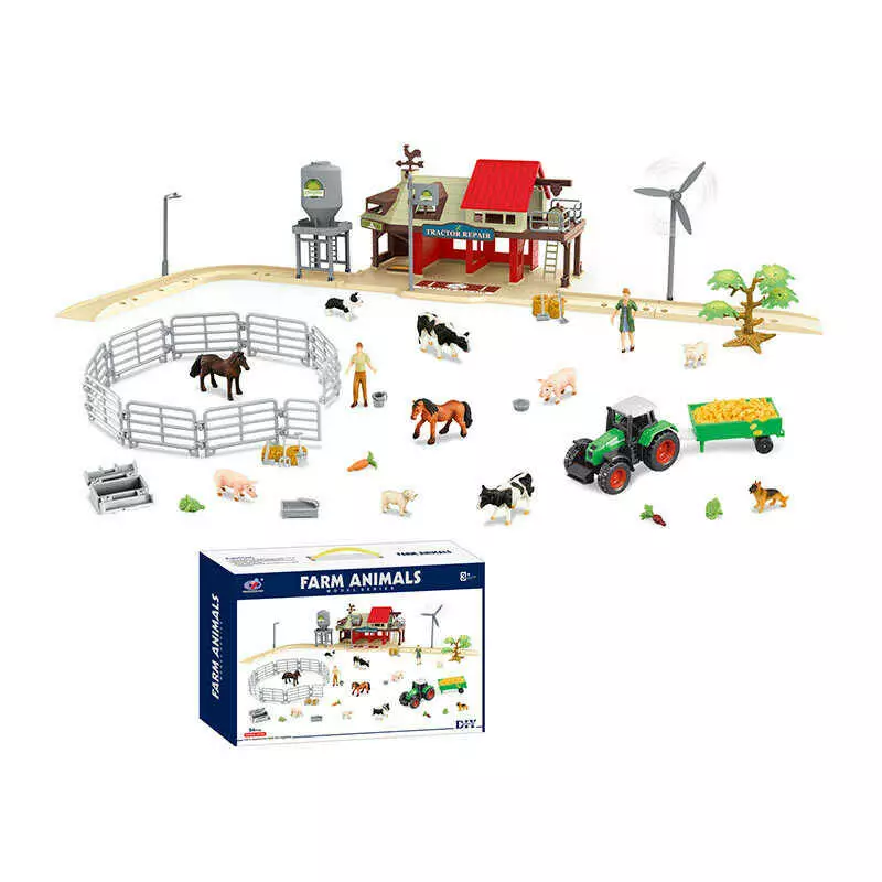 Ферма Q 9899 ZJ80 (12) 94 елементи, двоповерховий хлів, огорожі, траса, зернотерка, вітряк, фігурки людей і тварин, металопластик. трактор, в коробці