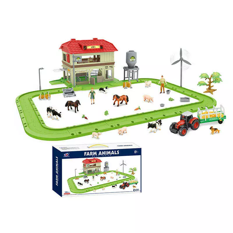 Ферма Q 9899 ZJ83 (12) 109 елементів, двоповерховий хлів, траса, зернотерка, вітряк, фігурки людей і тварин, металопластиковий трактор, в коробці