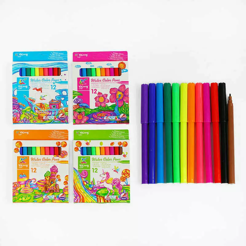 Фломастери С 37055 - YL875019-12 (240) 12 кольорів, 4 види, на водній основі, в коробці, ВИДАЄТЬСЯ ТІЛЬКИ МІКС ВИДІВ