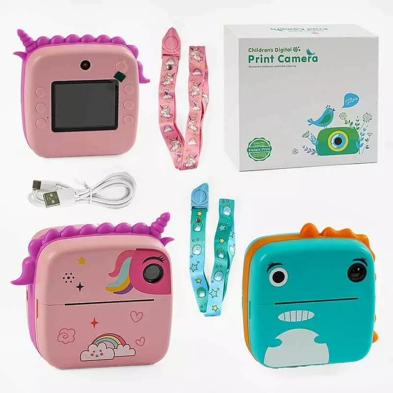 Фотоапарат-принтер C 66627 (30) 2 кольори, фронтальна камера, чб друк, USB-кабель, рулон термопаперу, звук, фото, відео, ігри, SD роз’єм, в коробці