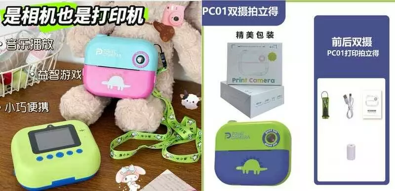 Фотоапарат-принтер C 72981 (40) 2 види, фронт. камера, роз’єм для TF, фото, відео, фільтри, рамки, плеєр, 5 ігор, ч-б друк, термопапір, в коробці
