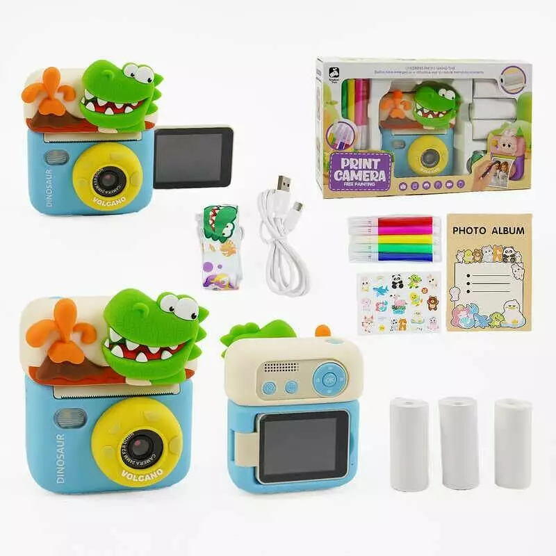 Фотоапарат-принтер M 12 D (40) поворотний екран, дріт USB Type-C, роз’єм для SD карти, 3 рулони термопаперу, ремінець, наліпки, фломастери, в коробці