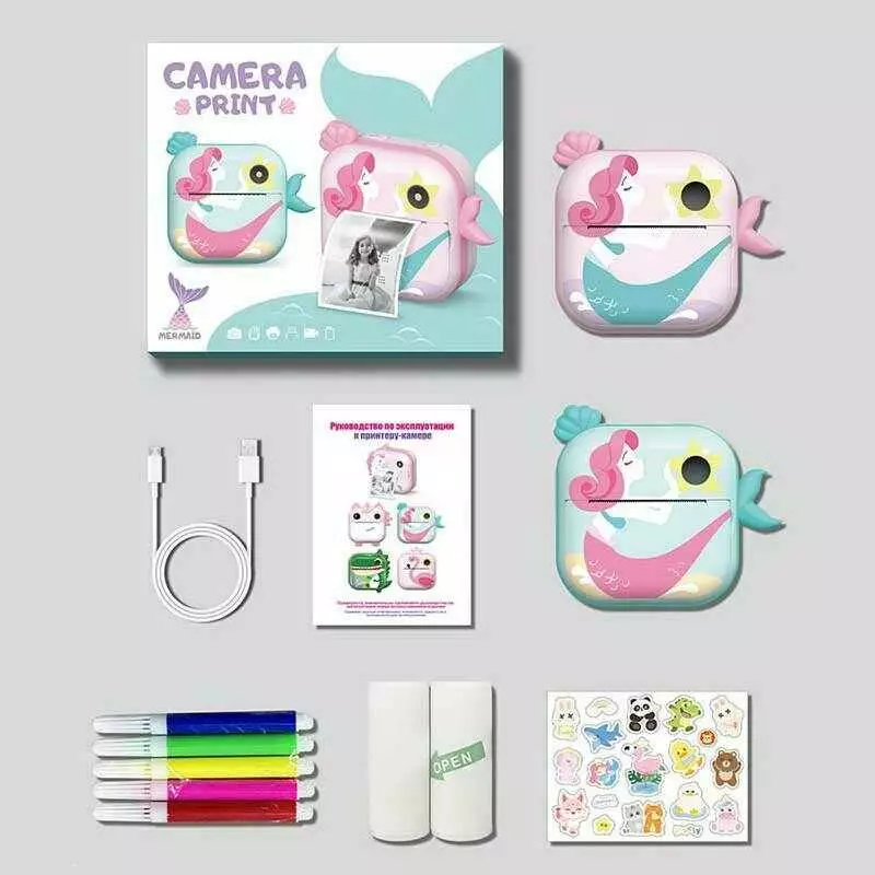 Фотоапарат-принтер M 5 Y Штрих=30564 (50) 2 кольори, фронтальна камера, дріт micro USB, роз’єм для SD карти, 2 рулони термопаперу, ремінець, в коробці