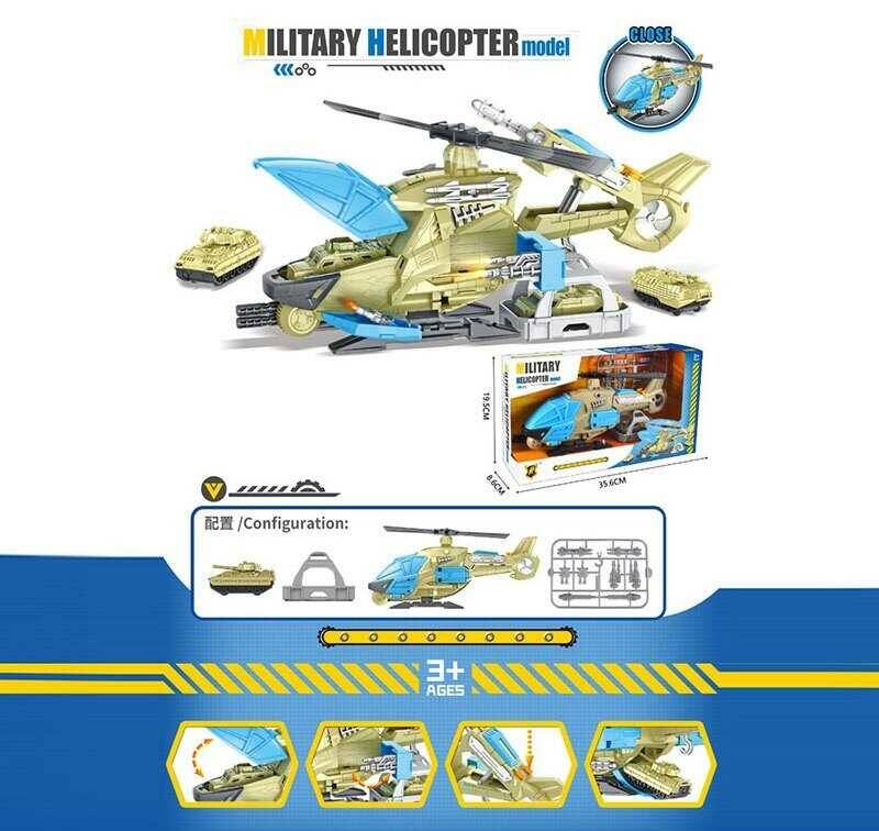 Гелікоптер P 966 A (24) довжина: 28 см, рухомі елементи, механічний запускач, снаряди, танк, лопаті механічно обертаються, в коробці