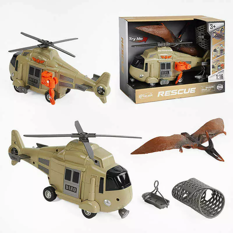 Гелікоптер WY 752 A (18) масштаб 1:16, інерція, звуки, підсвічування,фігурка птеродактиля, в коробці