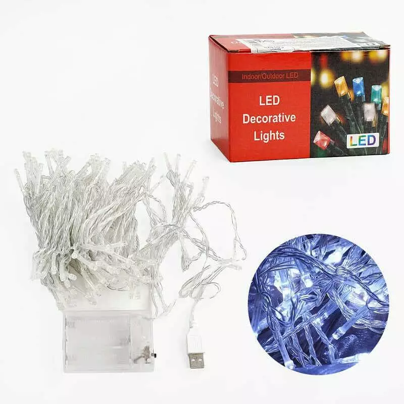 Гірлянда C 61479 (100) 100 ліхтариків, 9 м, на батарейках, біле світло, 1 режим, у коробці