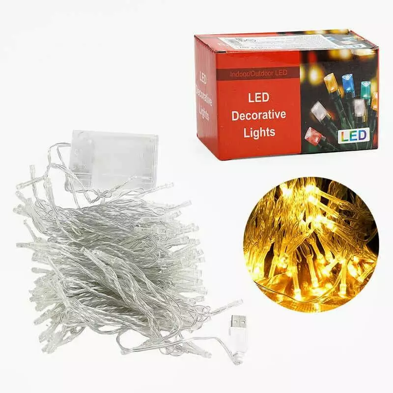 Гірлянда C 61479-60 Y (100) 10.3 метри, жовте світло, від USB та батарейок, 1 режим, у коробці