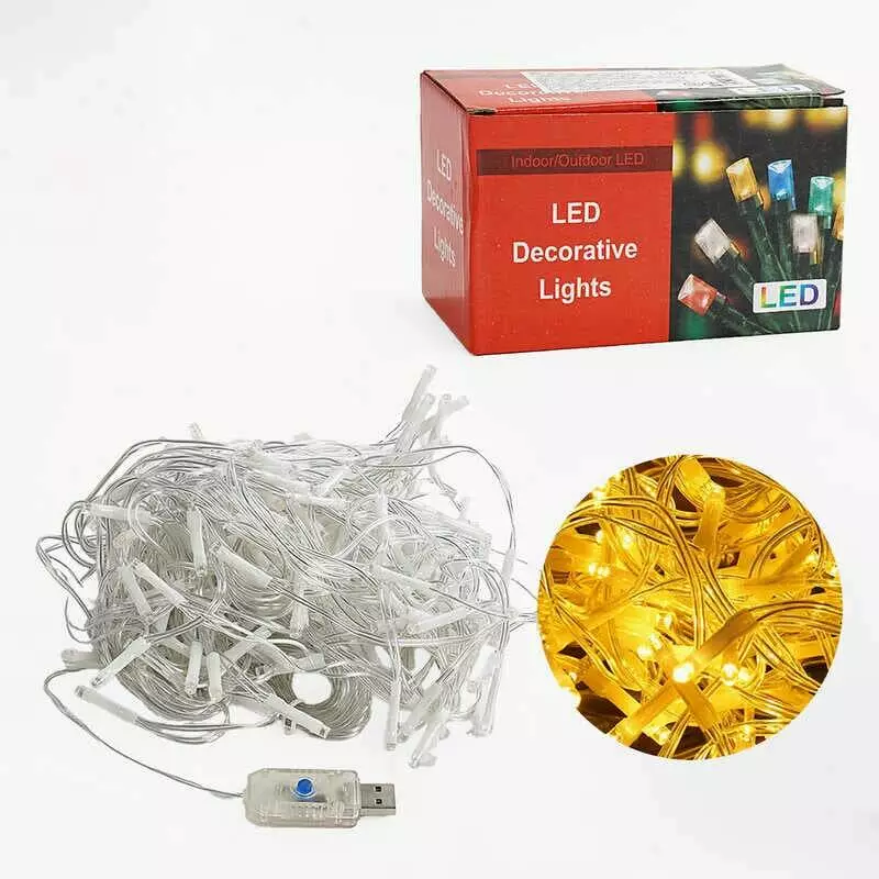Гірлянда C 61481-65 Y (100) 3.6 метрів, шторка, жовте світло, від USB, 8 режимів, у коробці