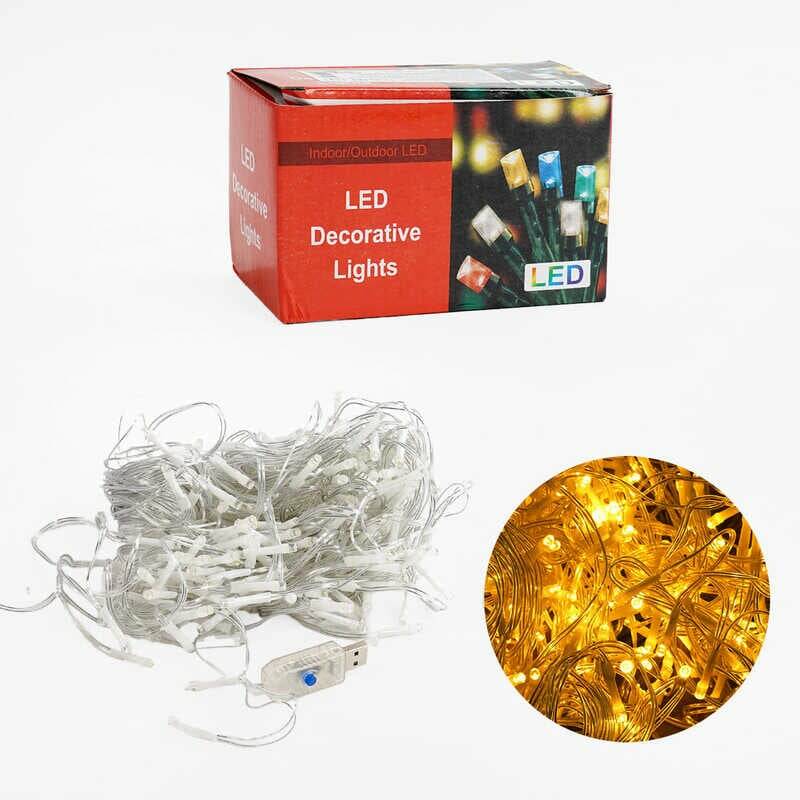Гірлянда C 61484-15 Y (100) 6.2 метри, 200 лампочок, шторка, жовте світло, від USB, 8 режимів, у коробці