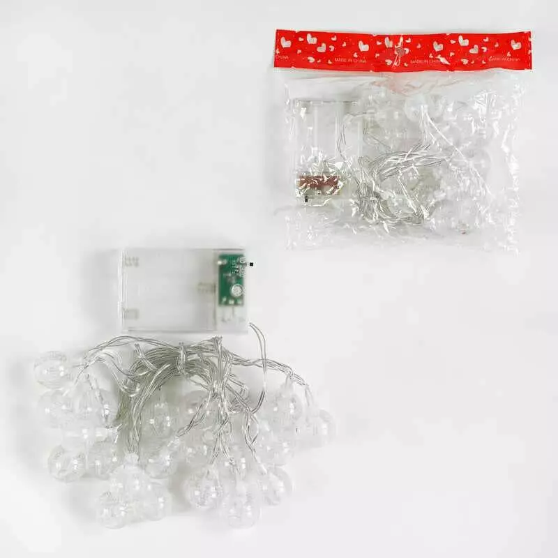 Гірлянда C 61487 (200) "Снігові кульки", 20 лампочок, на батарейках, жовте світло, 2 режими, у пакеті