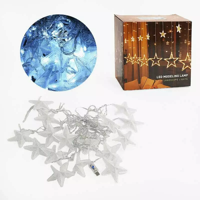 Гірлянда C 61482 (36) "Зірки", 5.7 метрів, біле світло, від USB, 8 режимів, у коробці