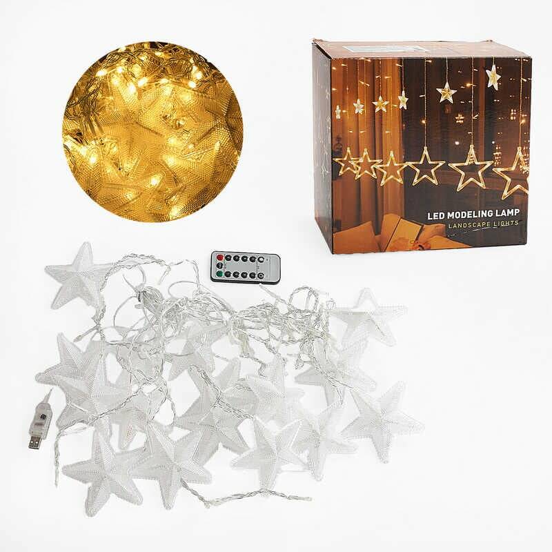 Гірлянда з пультом C 61482-70 Y (36) "Зірки", 5.7 метрів, жовте світло, від USB, 8 режимів, пульт дистанційного керування, у коробці